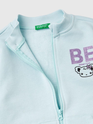 Benetton dukserica dugih rukava od čistog organskog pamuka sa čvrstim, ali laganim osećajem. Visoka kragna, rajsferšlus otvor i zaštitni rajsferšlus, svetlucavi logo Benetton. Standardni kroj i džepovi na prednjoj strani. Praktična i svakodnevna, savršena kao dodatni sloj.