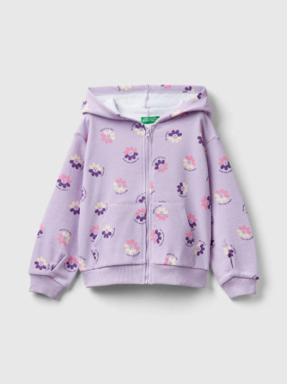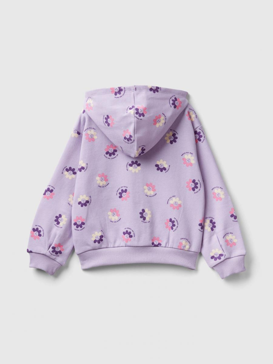 Benetton dukserica sa kapuljačom za devojčicu od čistog pamuka, normalnog kroja. Dugi rukavi sa spuštenim ramenima, prednjim patentnim zatvaračem i prednjim našivenim džepovima. Romantični cvetni print. Ležerno i ženstveno.