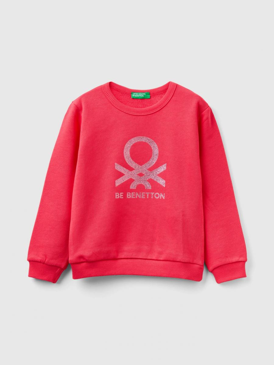Benetton dukserica dugih rukava za devojčicu sa okruglim izrezom od čistog organskog pamuka sa čvrstim, ali laganim osećajem. Regular fit model, svetlucavi logo Benetton na prednjoj strani. Ažurirani kroj za moderan izgled.