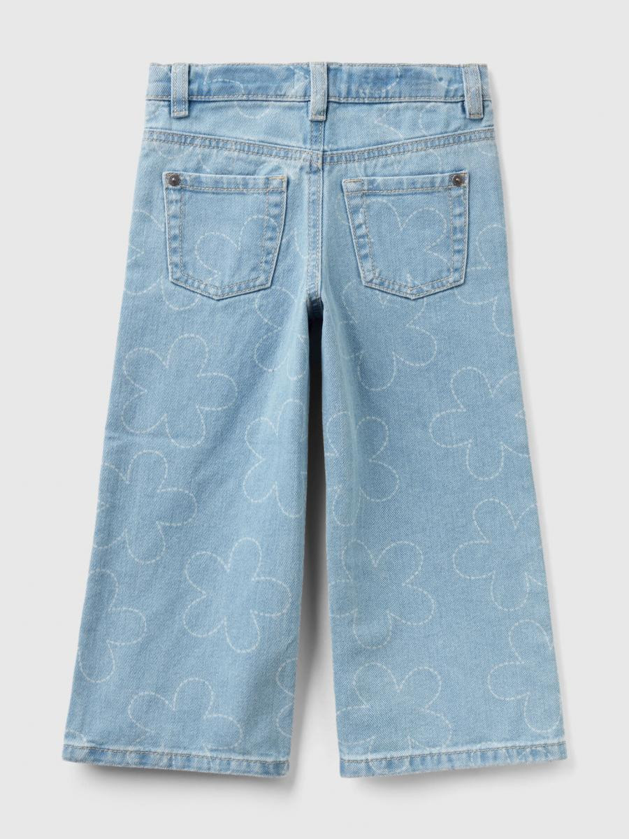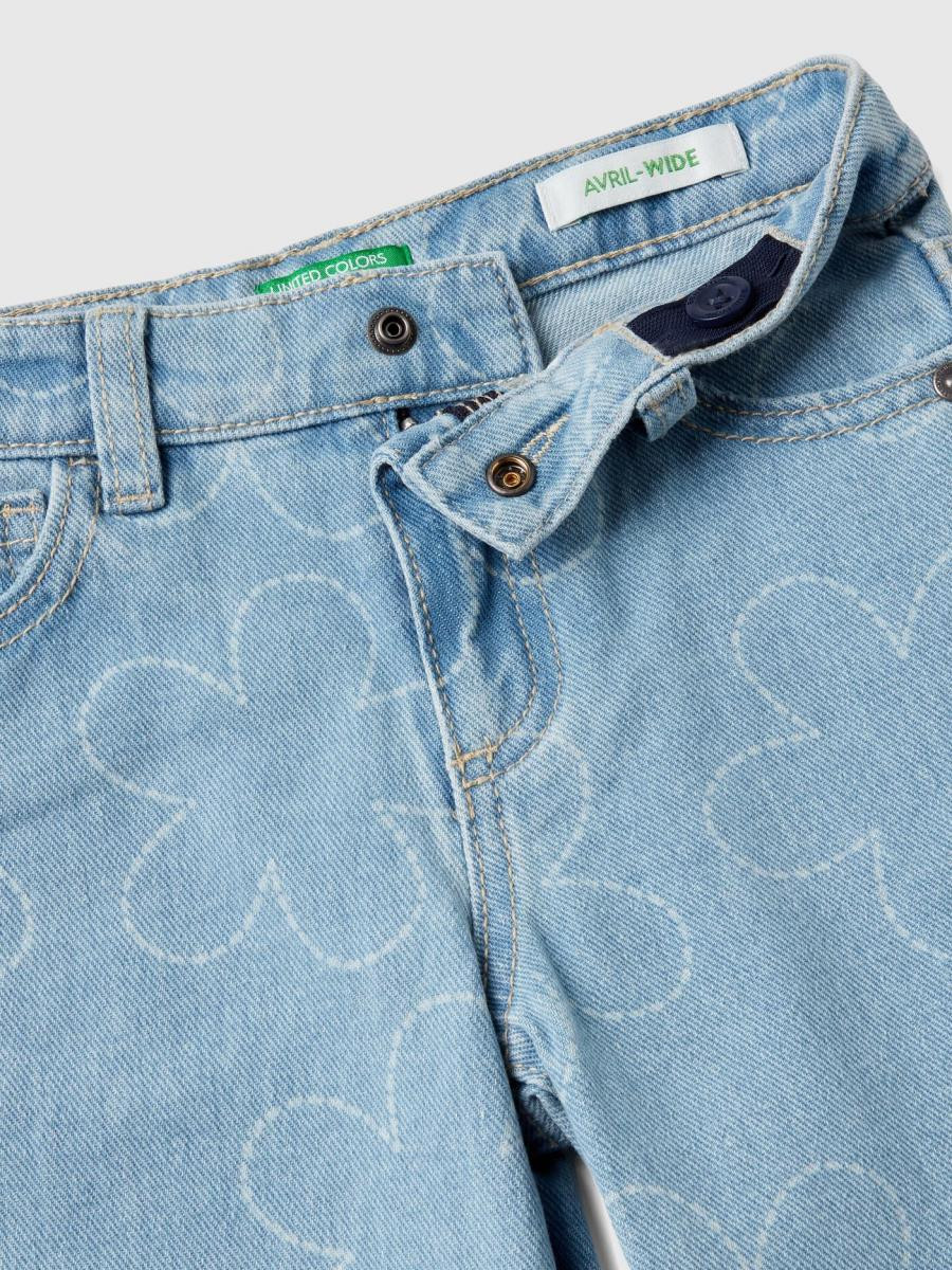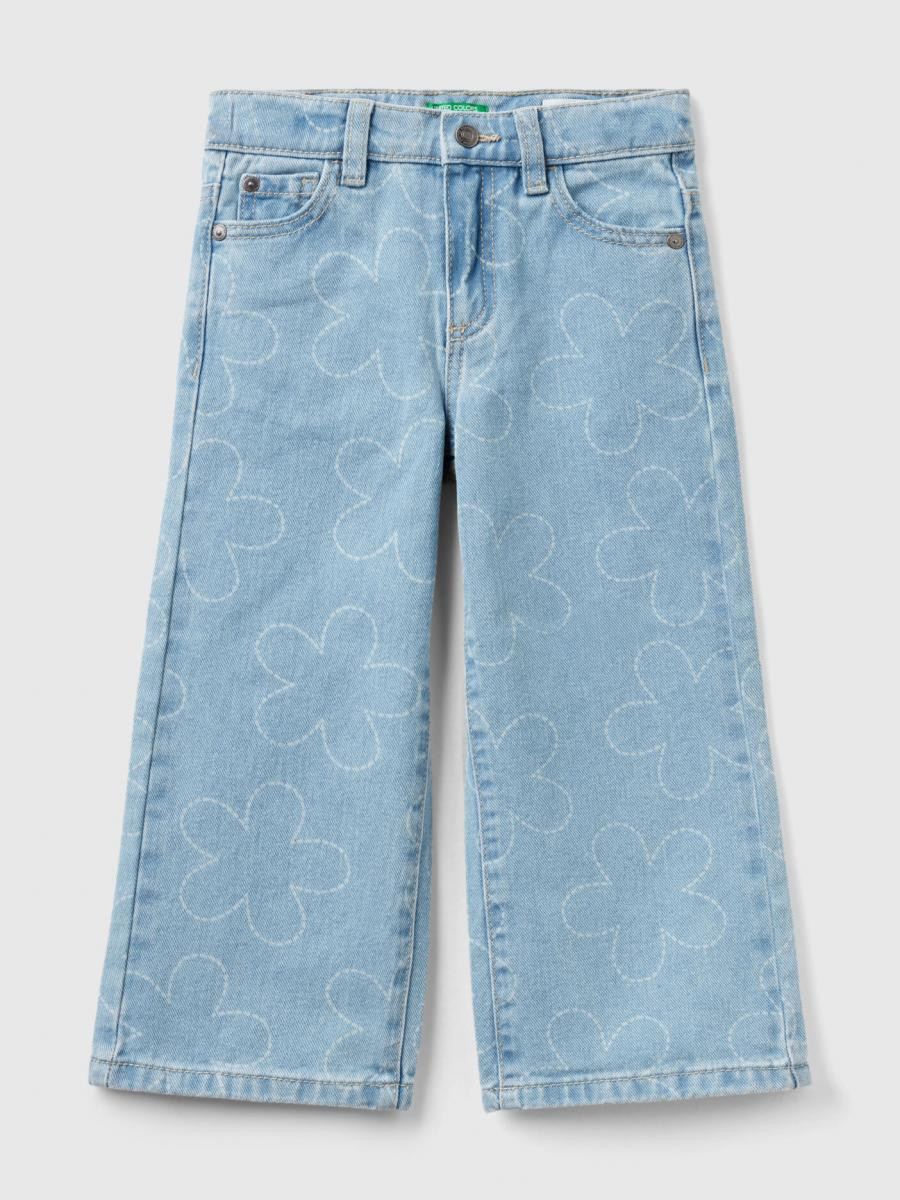 Benetton pantalone za devojčicu od čistog pamučnog teksasa sa pohabanim izgledom. Dizajn sa pet džepova i širokim nogavicama. Struk sa patent zatvaračem i otvaranjem dugmetom, praktičan podesivi unutrašnji elastični struk. Slatki cvetni dezen po celom komadu, za romantičan, trendi izgled.