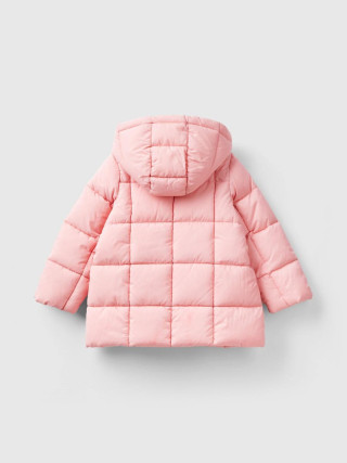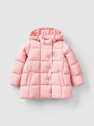 Benetton duga podstavljena jakna za devojčicu od sjajne Rain Defender tkanine sa kvadratnim šavovima. Duplo prednje kopčanje sa dugmadima, prednjim džepovima, okovratnikom i praktičnom kapuljačom koja se može skinuti. Aplikacija sa logotipom od lureksa na levoj strani grudi. Bon ton stil čak i u najhladnijim mesecima.
