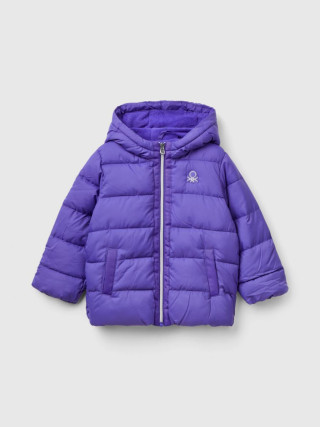 Benetton podstavljena jakna za devojčicu od tehničke tkanine Rain Defender, topla, ali ultra lagana, sa podstavom Duck Free. Opremljena je praktičnom kapuljačom, prednjim džepovima i patentnim zatvaračem. Iznutra podstavljena flisom, logo Benetton od lureks konca na prednjoj levoj strani.