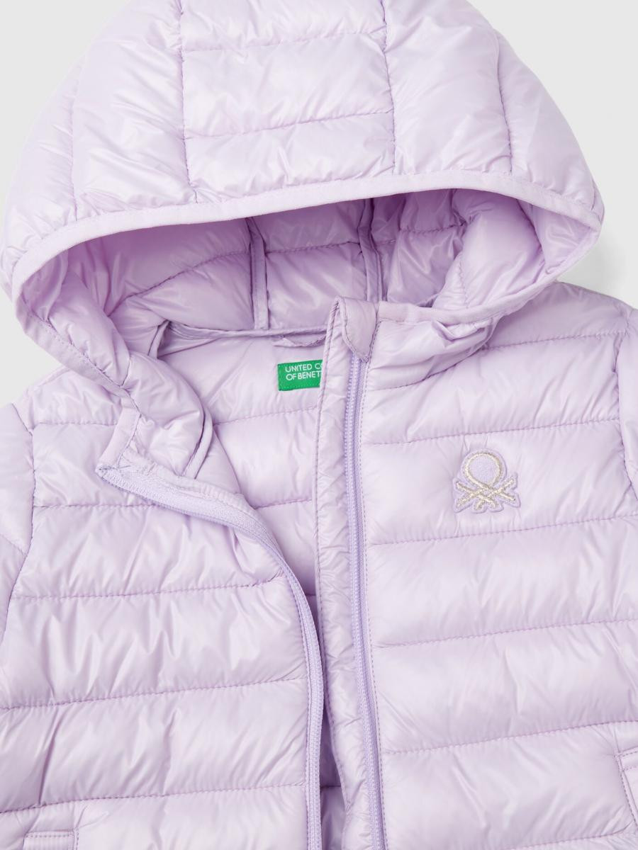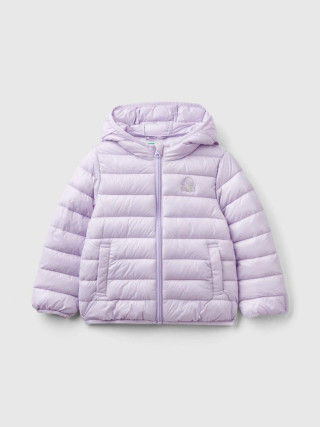 Benetton puffer jakna za devojčicu od tehničke Rain Defender tkanine. Topla, ali ultra lagana, sa podstavom. Opremljena sa kapuljačom i praktičnim prednjim džepovima. Zatvaranje rajsferšlusom i zaštitnim patentnim zatvaračem. Unutrašnja elastična traka na dnu i na kraju rukava. Stiker sa logom Benetton na levoj strani grudi.