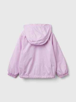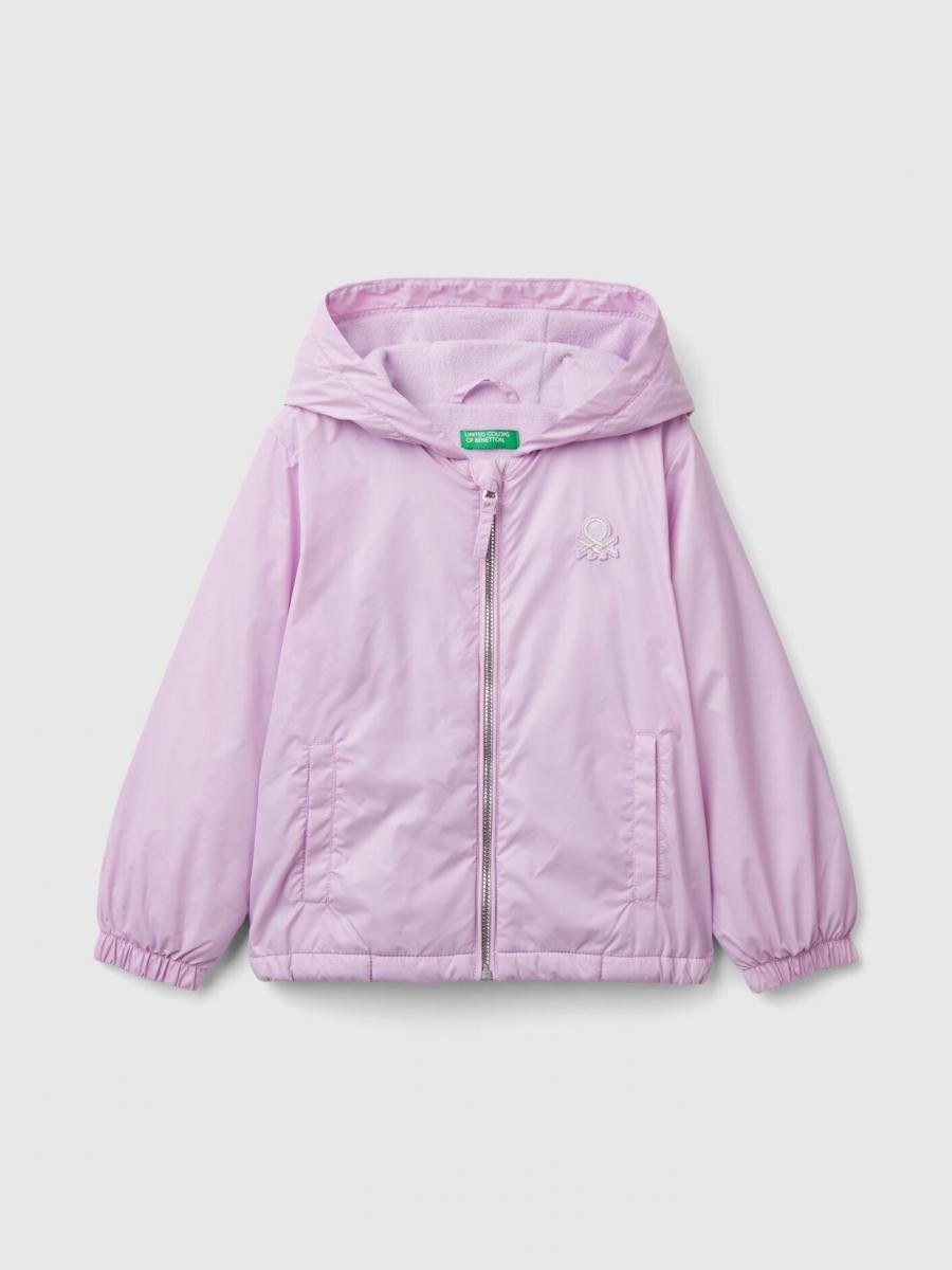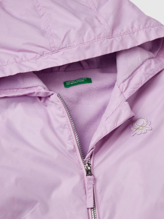 Benetton podstavljena jakna sa kapuljačom za devojčicu od sjajnog najlona Rain Defender. Dugi rukavi, patent zatvarač koji se otvara do brade, unutrašnja elastična traka sa strane i na kraju rukava. Našiveni džepovi na prednjoj strani i vezeni logo na levoj strane grudi. Postavljena od mekog mikroflisa za još veću udobnost.