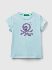 Benetton majica kratkih rukava za devojčicu sa okruglim izrezom od čistog organskog pamuka. Stadardni kroj i slatki svetlucavi otisak na prednjoj strani. Osnovni komad koji je udoban na koži.