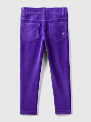 Benetton pantalone za devojcicu od rebrastog rastegljivog pamuka od pliša. Lažni prednji džepovi, lažni preklop i ukrasno dugme. Leda sa jarmom i dva džepa, od kojih jedan ima vezen logo. Ležerno, udobno i svakodnevno.
