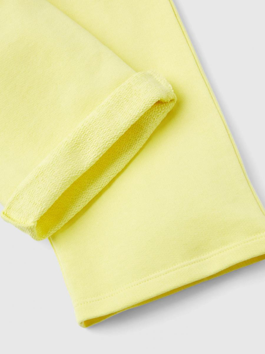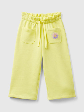 Benetton donji deo trenerke za devojčicu od mekog čistog pamučnog flisa sa čvrstim, ali laganim osećajem. Skupljeni struk sa unutrašnjom elastičnom trakom i vezicom. Štampa sa aplikacijom na prednjem džepu.