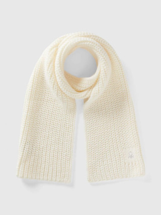 Benetton šal za devojčicu od pletene mešavine vune sa logom od cirkona na dnu. Neophodan dodatak tokom najhladnijih meseci.