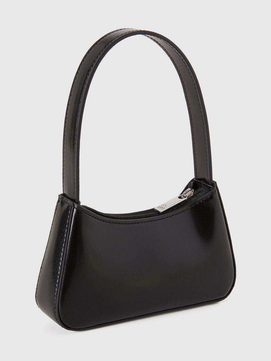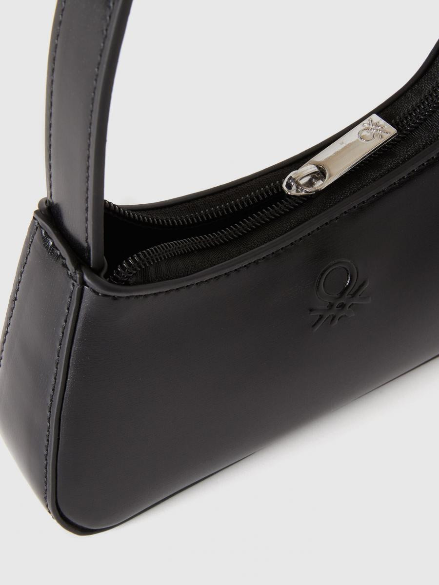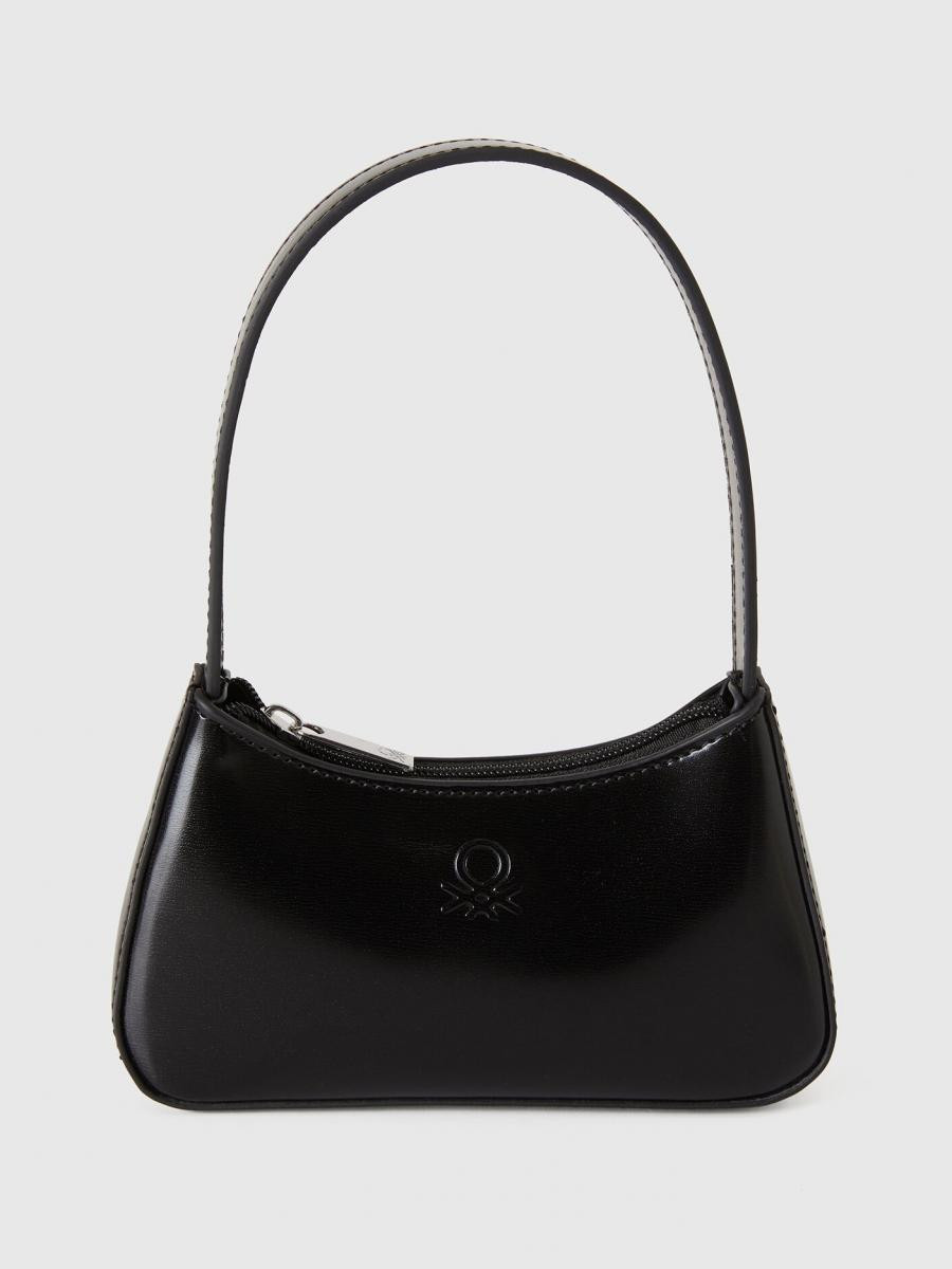 Benetton mala torbica za devojčicu od sjajne imitacije kože. Praktično zatvaranje rajsferšlusom, tvrda ručka i pritisnut logo na jednoj strani.