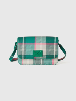 Benetton torbica za devojčicu od imitacije kože, sa dezenom srca. Prednji preklop sa logotipom od smole i zatvaranjem na metalni magnet. Opremljena kaišom za rame sa čičak zatvaračem na jednom kraju.