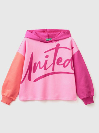Benetton dukserica dugih rukava sa kapom za devojčicu, 100% pamuk. Kratak kroj sa spuštenim ramenima i logom Benetton na prednjoj strani.