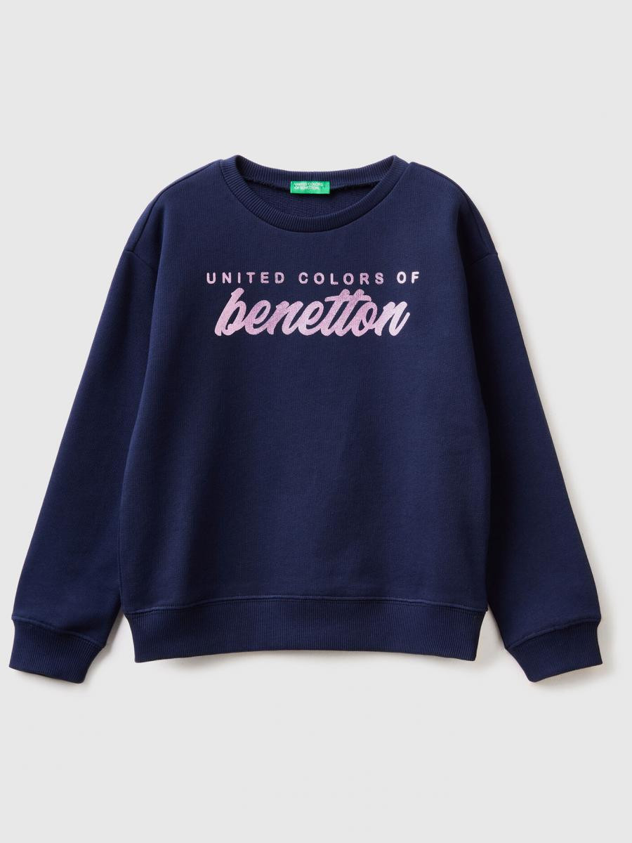 Benetton dukserica dugih rukava za devojčicu, 100% pamuk. Logo Benetton na prednjem delu. Moderan kroj sa blago spuštenim ramenima.