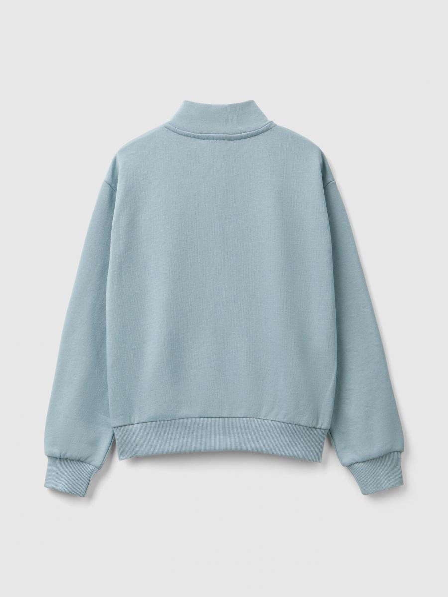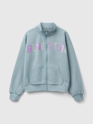 Benetton dukserica za devojčicu sa kragnom i rajsferšlusom od čistog pamuka sa laganim, ali doslednim osećajem. Dugi rukavi i opušteni kroj, štampa logotipa sa šljokicama na prednjim i prednjim našivenim džepovima. Praktičan i svakodnevni, savršen kao dodatni sloj.