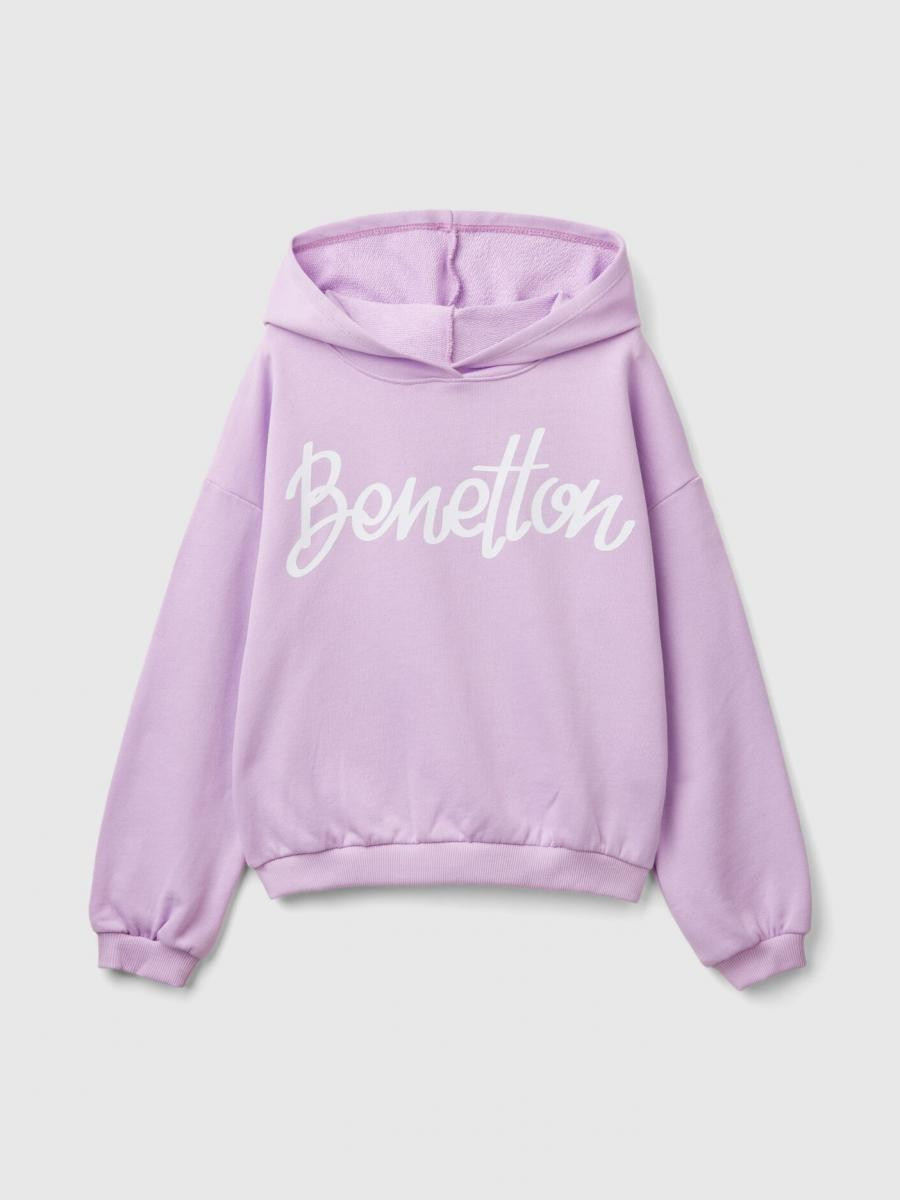 Benetton dukserica sa kapuljačom za devojčicu od čistog pamuka sa doslednim, ali laganim osećajem. Opuštenog kroja sa spuštenim ramenima i blago širokim dugim rukavima, prednjim logom štampe.