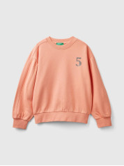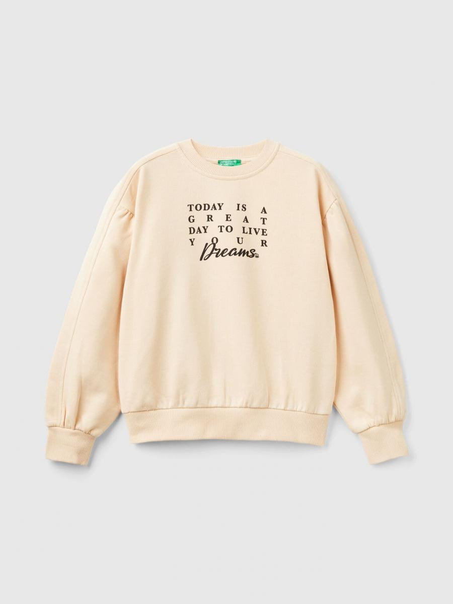 Benetton dukserica za devojčicu sa okruglim izrezom od čistog pamuka sa mekanim osećajem. Štampa na prednjoj strani i svetlucavi tekst na zadnjoj strani. Opuštenog kroja sa spuštenim ramenima, za hladan i aktuelan izgled.