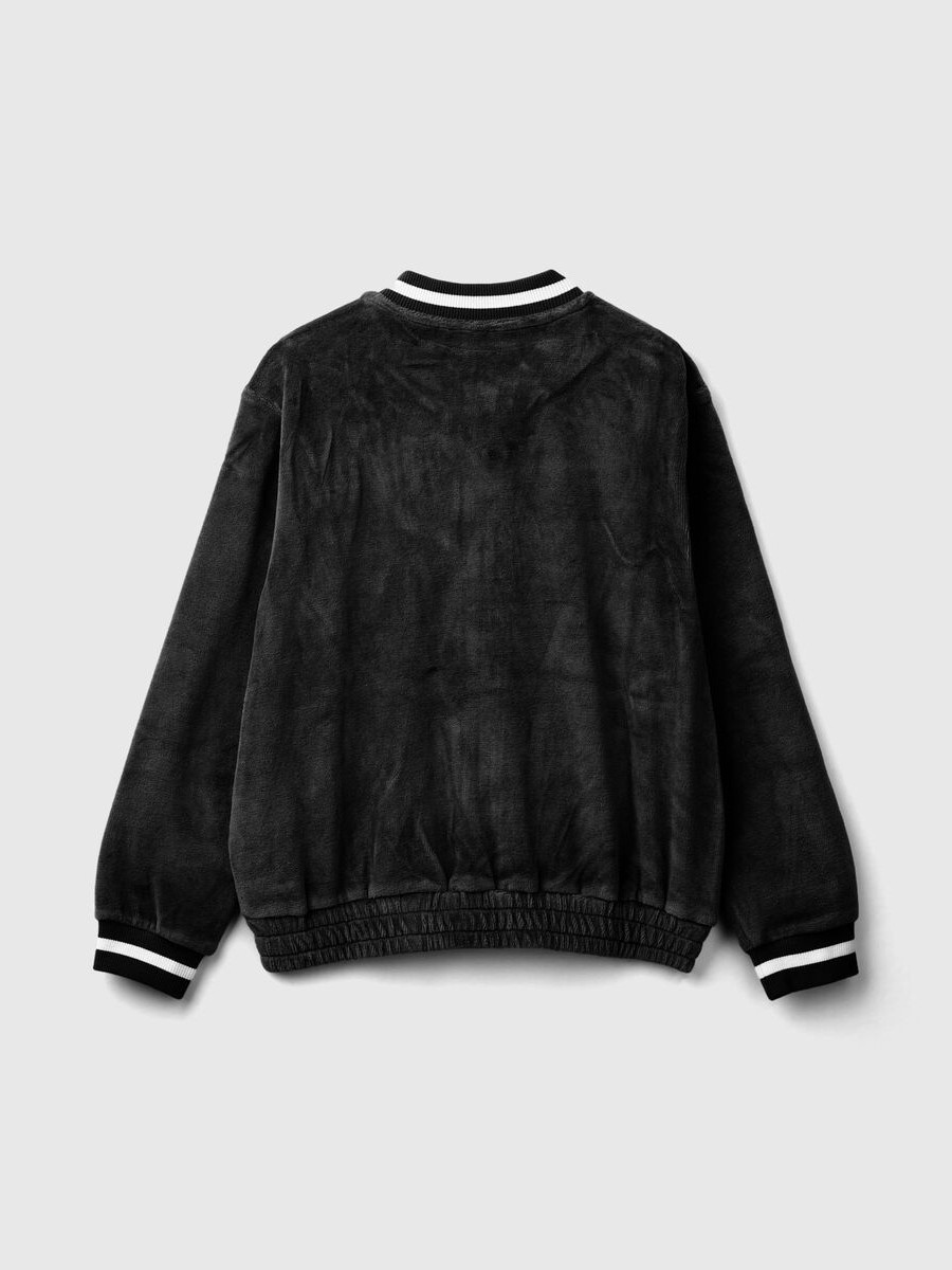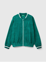 Benetton dukserica za devojčicu od mekanog pliša od mešavine pamuka regular fit kroja. Kopčanje patent zatvarača, kragna u stilu bomber jakne i unutrašnja elastična traka na dnu. Dugi rukav sa izvezenim logom na dnu. Clashing logo izvezen na levom dnu.