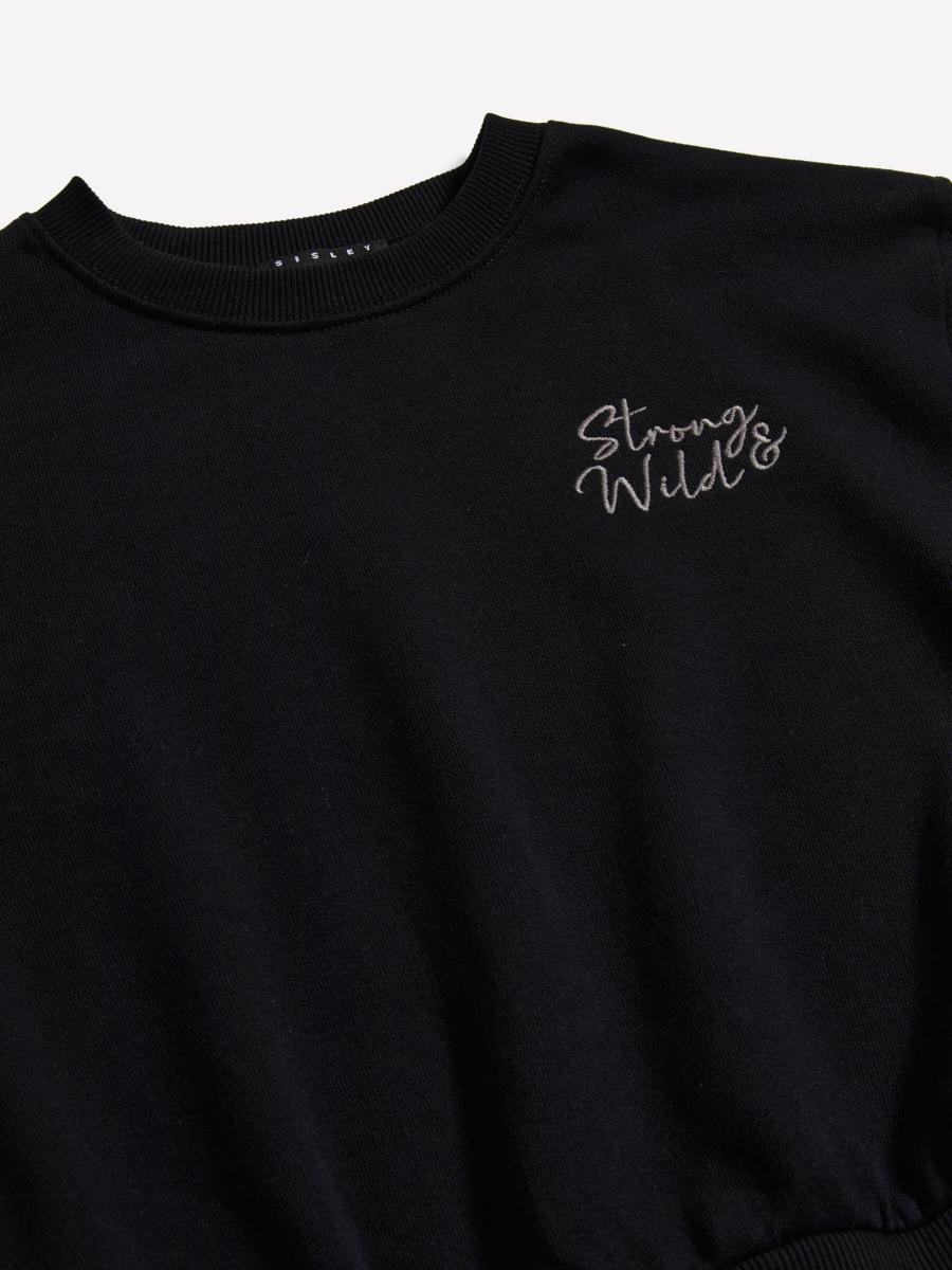 Sisley Young dukserica za devojčicu od 100% pamuka, sa okruglim izrezom, dugim balon rukavima sa cvetnim printom i vezom teksta na prednjoj strani.