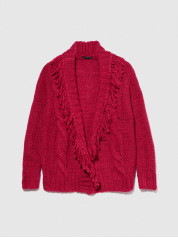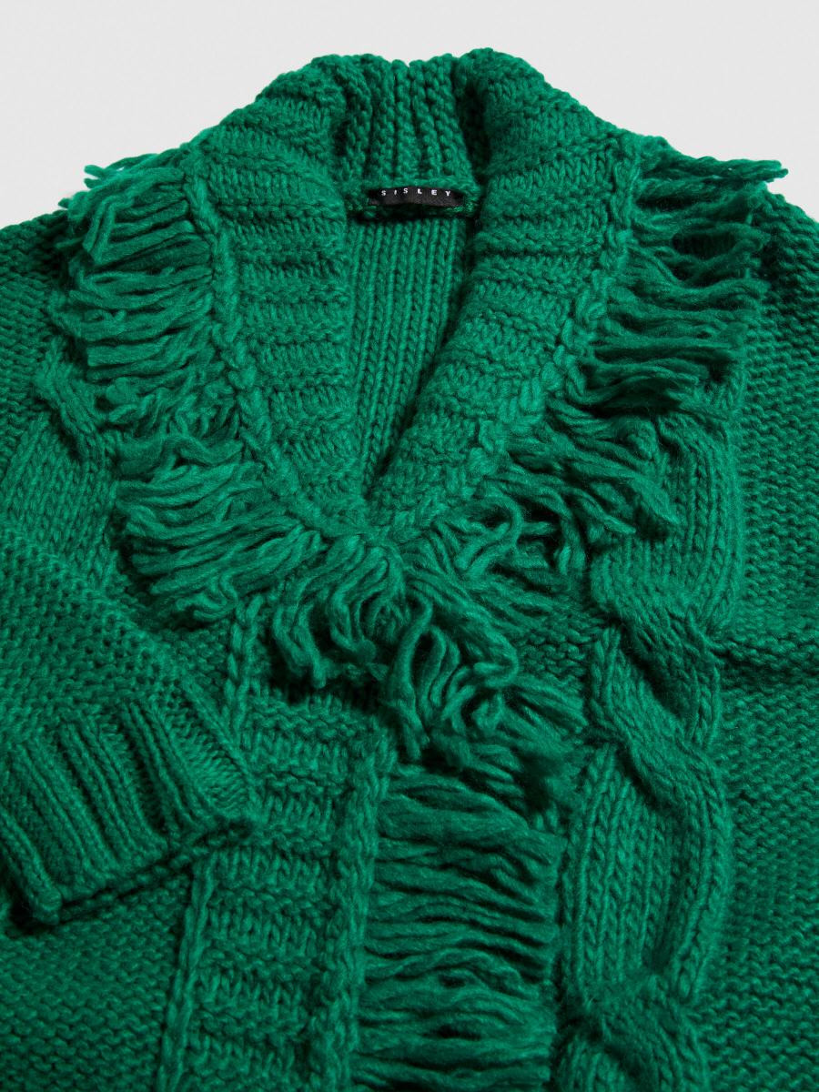 Sisley Young kardigan za devojčicu od mešavine vune, sa prednjom stranom sa radom i resama na vratu i duž otvora.