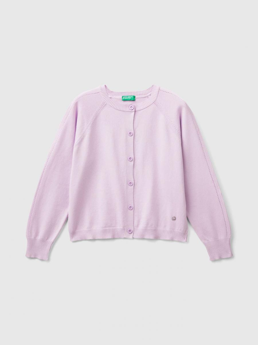 Benetton džemper za devojčicu od mešavine pamuka. Regular fit model sa kopčanjem dugmićima na prednjoj strani. Dugi raglan rukavi sa detaljima.