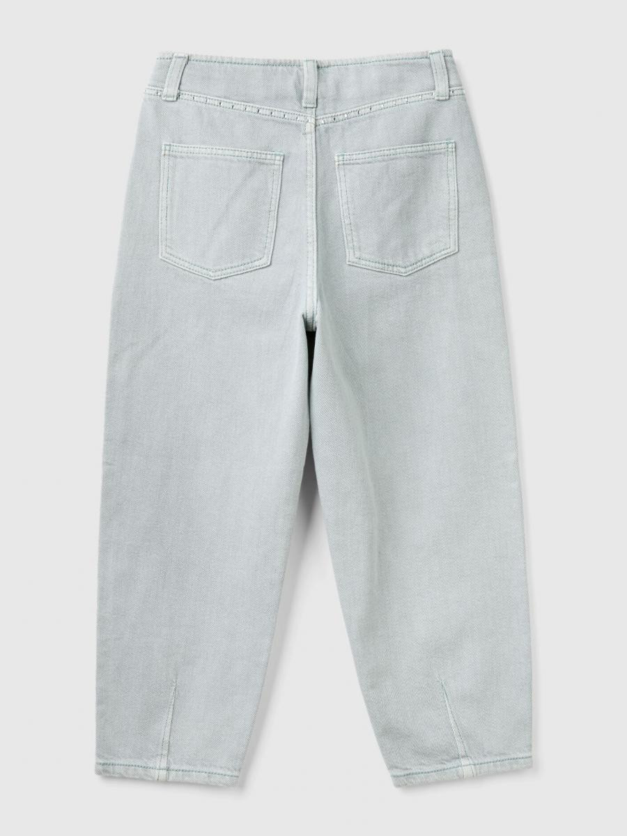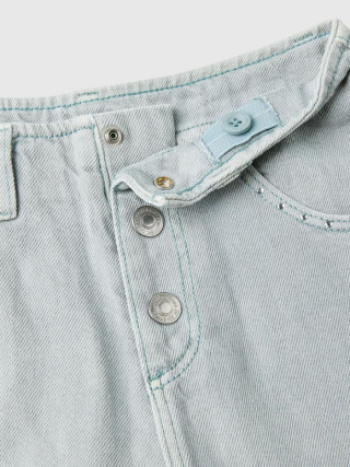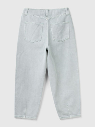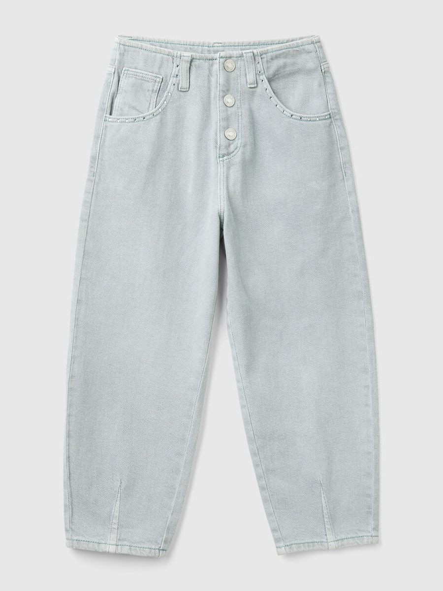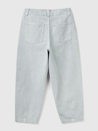 Benetton pantalone za devojčicu od čistog obojenog pamuka. Dizajn sa pet džepova, kopčanje sa dugmićima sa aplikacijom od štrasa na zadnjem rubu. Model spuštenog kroja, napravljen specijalnom bojom koja stvara blago izbledeli izgled.
