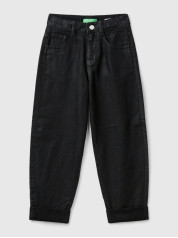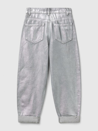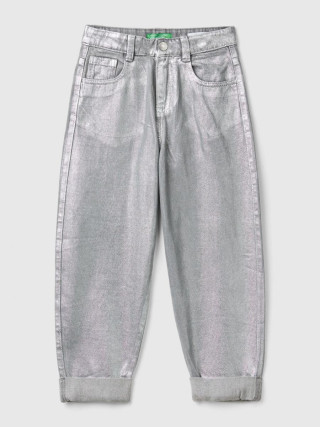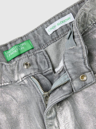 Benetton pantalone za devojčicu od čistog pamučnog brušenog teksasa sa stilizovanim izgledom. Dizajn sa pet džepova i široki kroj.