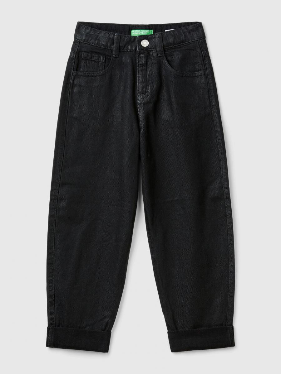 Benetton pantalone za devojčicu od čistog pamučnog brušenog teksasa sa stilizovanim izgledom. Dizajn sa pet džepova i široki kroj.
