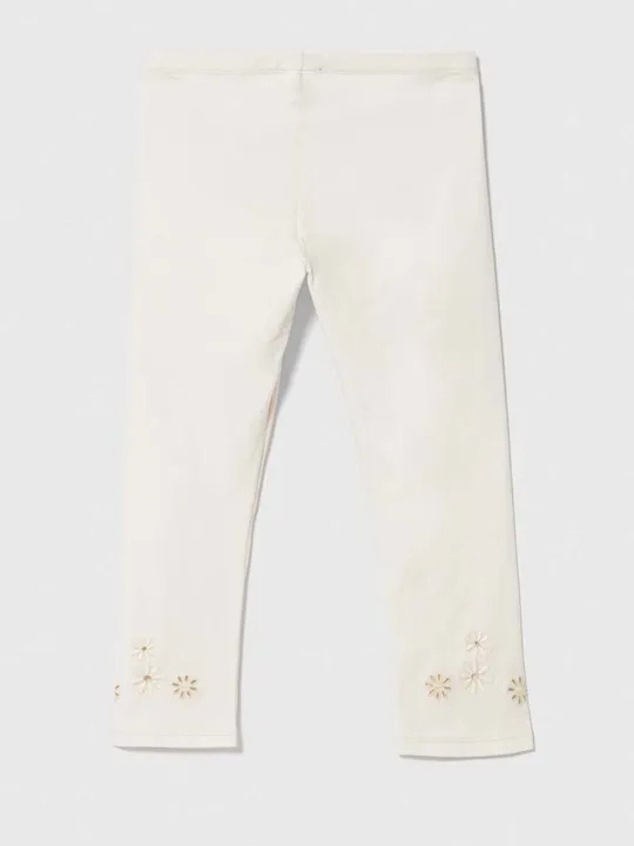 Benetton helanke za devojčicu od rastegljivog pamuka dužine 3/4. Unutrašnja elastična traka u struku, odgovarajuće izvezeno cveće na nogavicama. Regular fit model, za neobičan i ležeran odevni predmet.