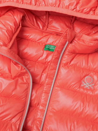 Benetton puf jakna za devojčicu od tehničke Rain Defender tkanine. Topla, ali ultra lagana, sa podstavom Duck Free. Opremljena kapuljačom i praktičnim prednjim džepovima. Zatvaranje patentnim zatvaračem. Unutrašnja elastična traka na dnu i na kraju rukava. Logo Benetton na prednjoj levoj strani. Komad Easy Care koji se može prati u mašini i sušiti, sledeći upustva navedena na etiketi.