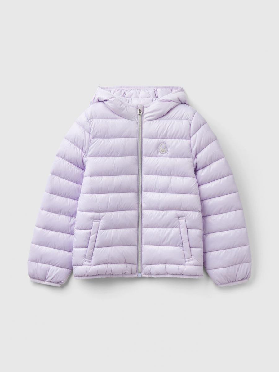 Benetton puffer jakna za devojčicu od tehničke Rain Defender tkanine. Topla, ali ultra lagana, sa podstavom. Opremljena sa kapuljačom i praktičnim prednjim džepovima. Zatvaranje rajsferšlusom i zaštitnim patentnim zatvaračem. Unutrašnja elastična traka na dnu i na kraju rukava. Stiker sa logom Benetton na levoj strani grudi.