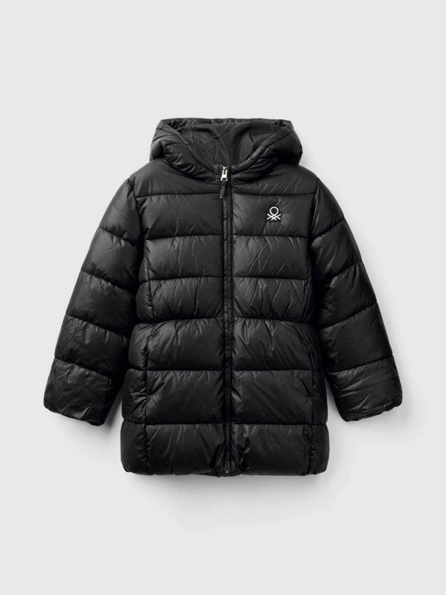 Benetton duga podstavljena jakna za devojčicu od najlona Rain Defender sa horizontalnim šavovima. Topla, ali ultra lagana, sa podstavom od 3D vate koja se uvek vrac?a u svoj oblik. Praktična kapuljača, patent zatvarač i prednji džepovi. Presečen struk sa skupom i logom na levoj strani grudi. Klasika zimske garderobe.