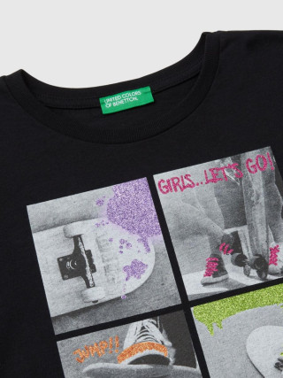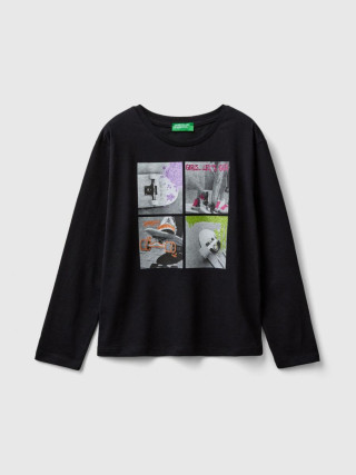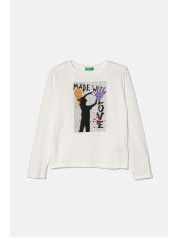 Benetton majica dugih rukava za devojčicu sa okruglim izrezom od čistog organskog pamuka. Meko krojenje, fotografski otisak sa blistavim detaljima na prednjoj strani. Originalno i moderno.