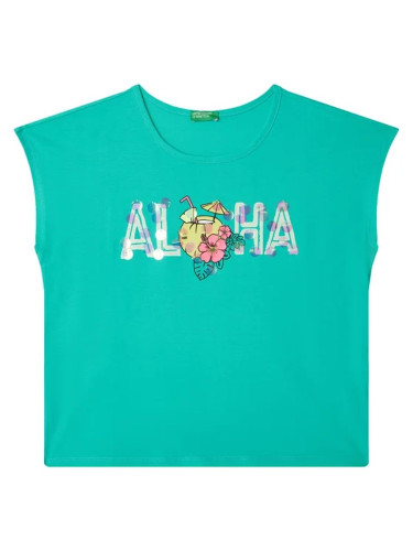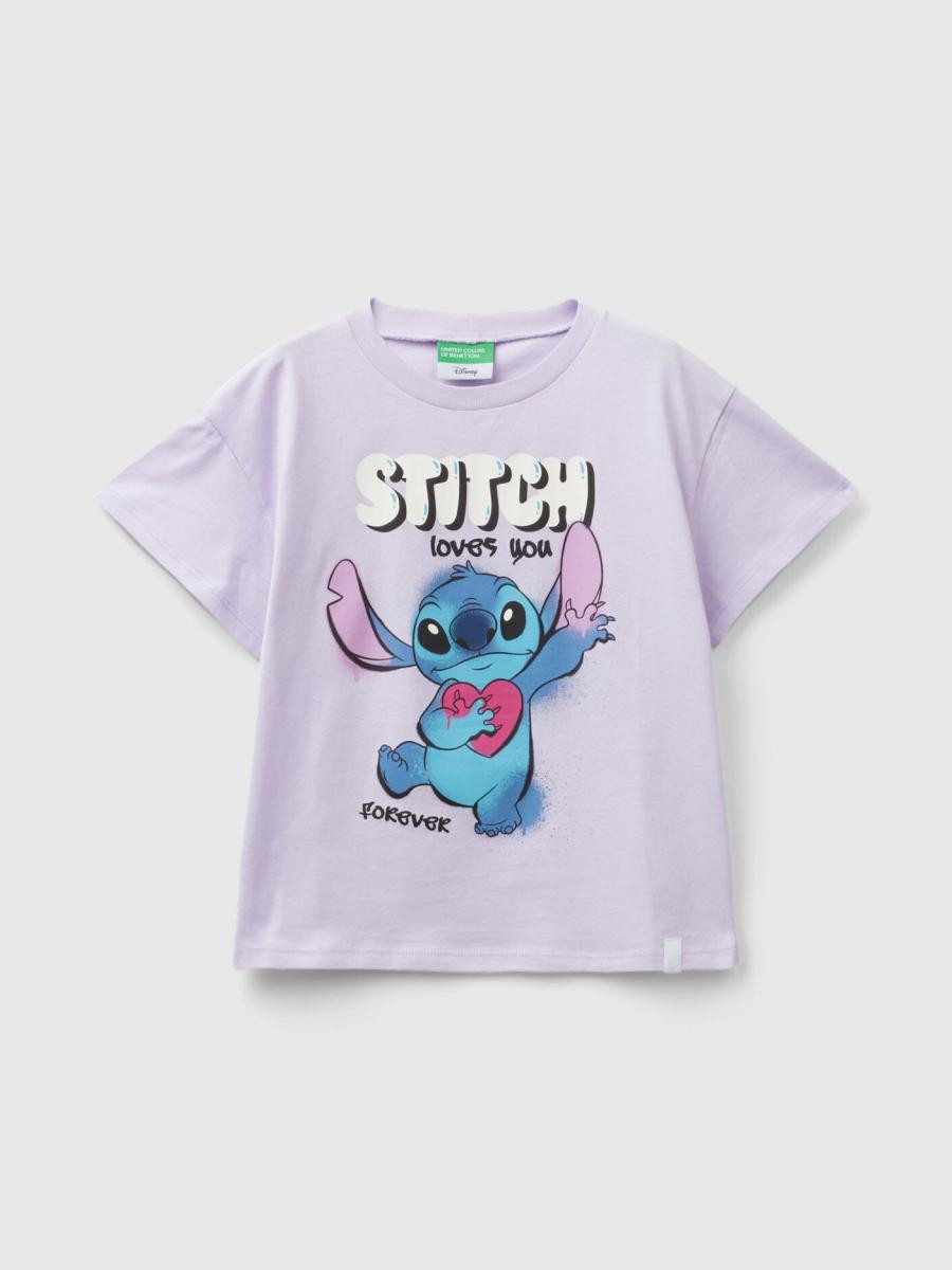 Benetton majica za devojčicu sa okruglim izrezom kratkih rukava od čistog pamuka. Blago kutijasto krojenje i Disnei Lilo & Stitch print na prednjoj strani. Slatka i zabavna.