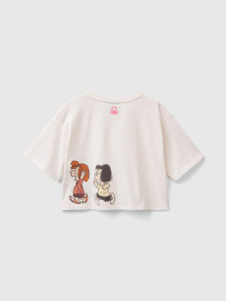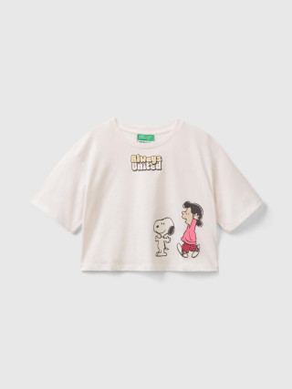 Benetton majica za dečaka sa okruglim izrezom kratkih rukava od čistog pamuka. Kratki kutijasti kroj i Peanuts print znakova. Zabavno i udobno.