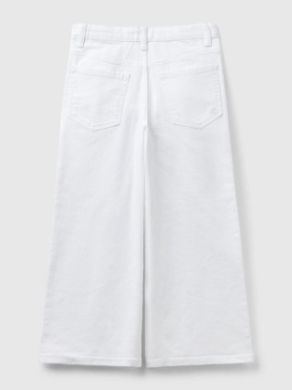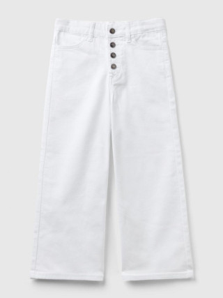 Benetton pantalone za devojčicu sa četiri džepa visokog struka od elastičnog pamuka. Široka i meka nogavica, kopčanje dugmićima, podesivi unutrašnji elastični struk. Ženstvene i svestrane.