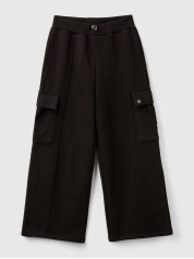 Benetton duge kargo model pantalone za devojčicu od čistog pamučnog materijala. Opuštena i ravna nogavica sa širokim bočnim džepovima. Struk sa elastičnom vezicom i čepom, džepovi uvučeni sa strane. Udobne i moderne, savršene za slobodno kretanje.