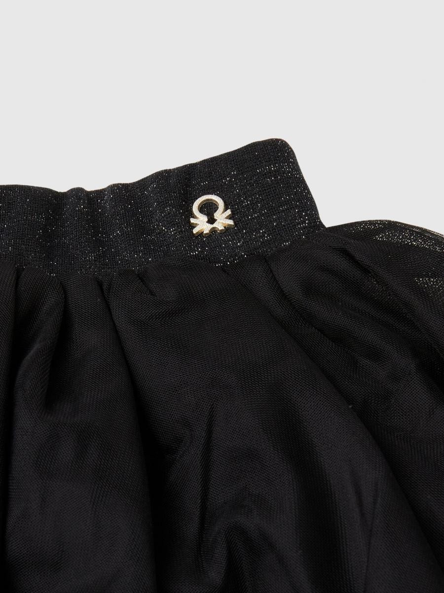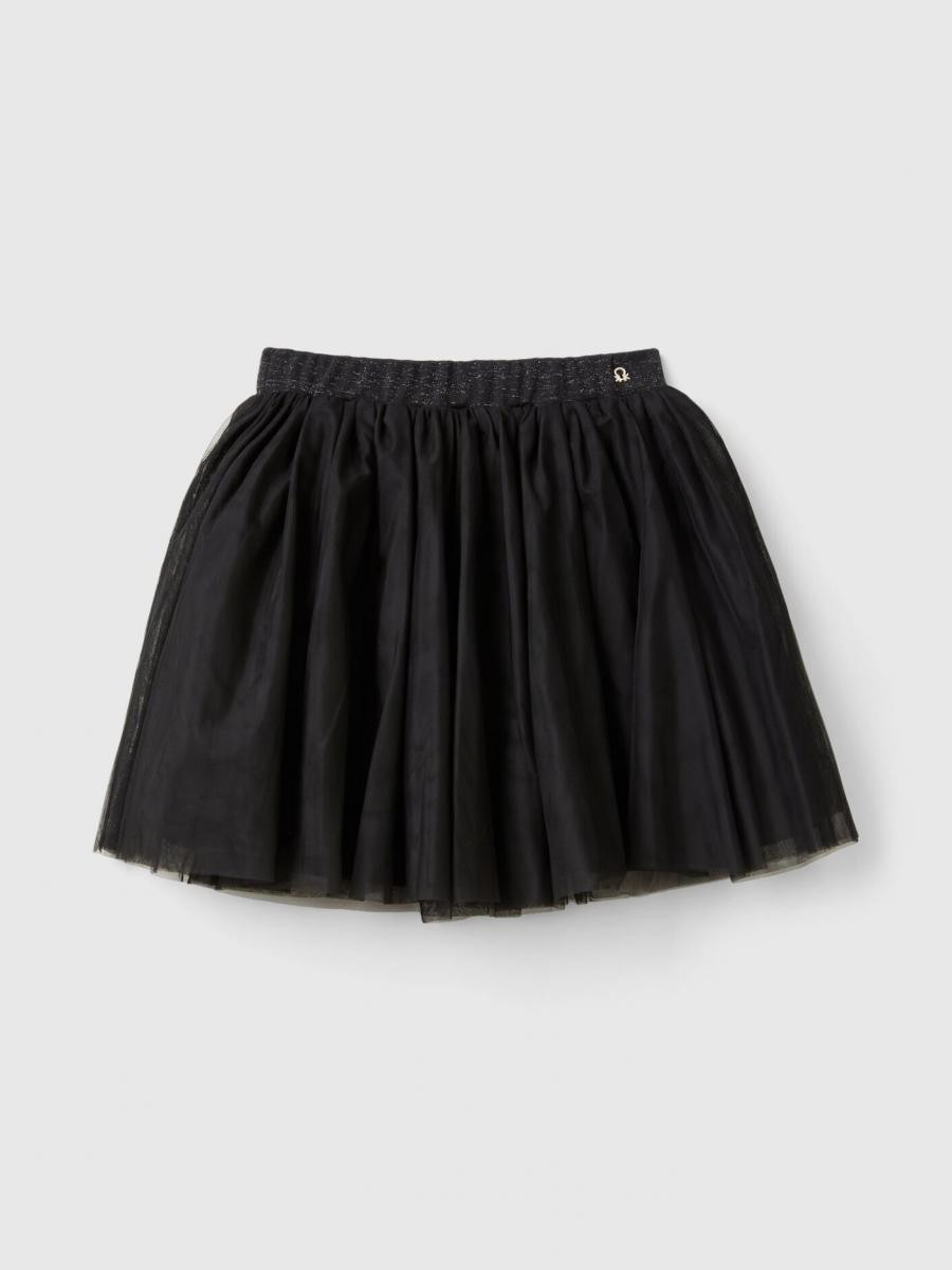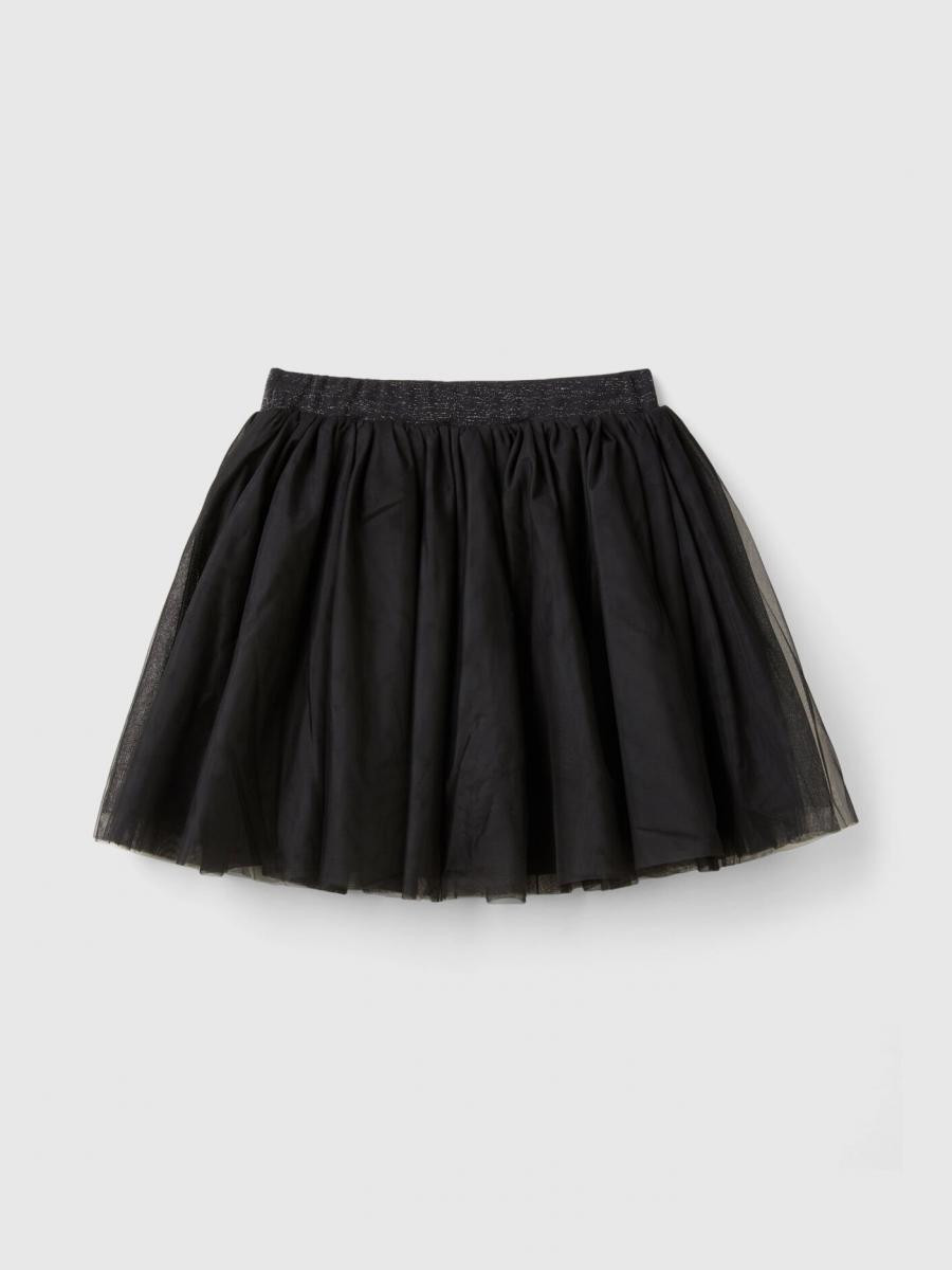 Benetton suknja za devojčicu od tila sa postavom od čistog pamuka. Struk sa lureksom i unutrašnjom elastičnom trakom. Graciozna i ženstvena, savršen za ceremonije i posebne prilike.