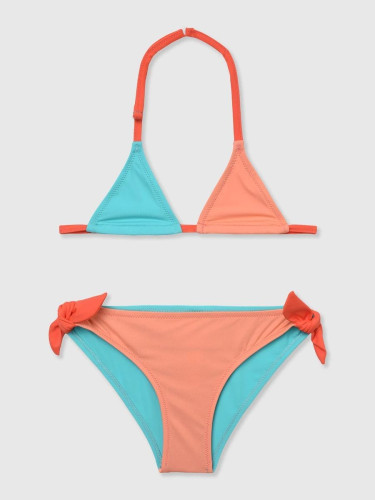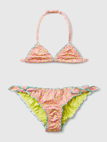 Benetton kupaći kostim za devojčicu sa prugastim dezenom na struku i donjem delu grudi. Trouglasti gornji deo sa podesivom trakom. Gaćice klasičnog kroja sa visokim stranicama. Napravljen od ECONIL, 100% regenerisanog najlonskog vlakna sa beskonačnim mogućnostima recikliranja.