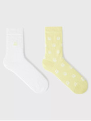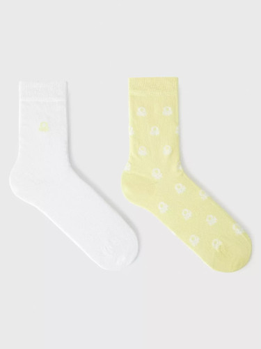 Benetton unisex set koji se sastoji od dva para dugih čarapa od rastegljive mešavine organskog pamuka. Jedna jednobojna, druga sa motivom loga Benetton.