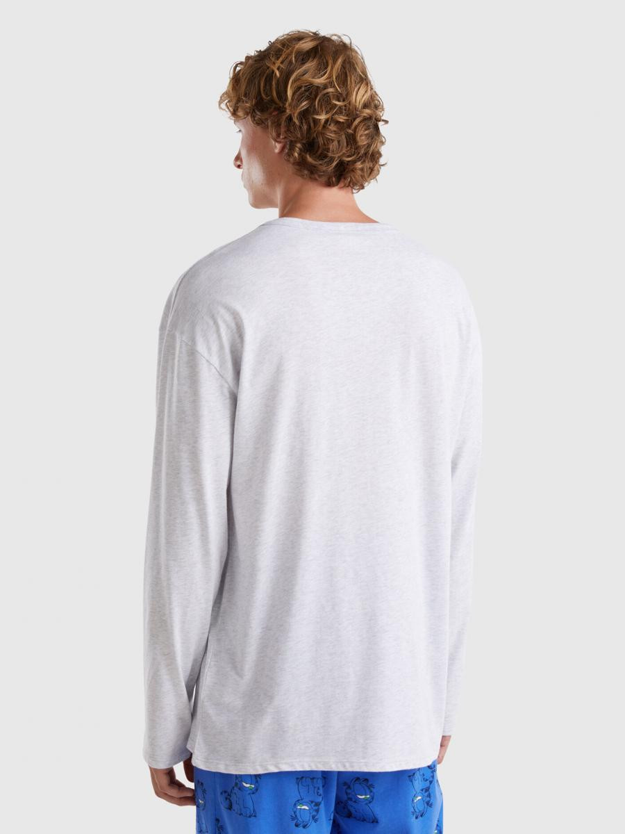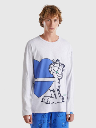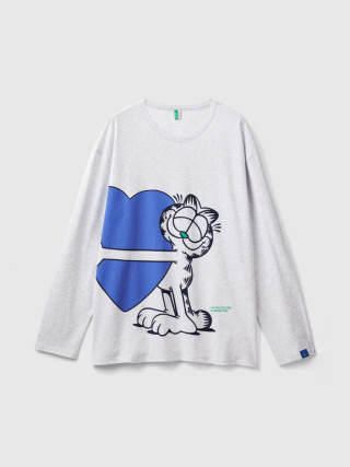 Benetton muška majica sa okruglim izrezom dugih rukava od čistog toplog pamuka. Unutrašnja elastična traka na kraju rukava i na prednjem delu Garfield aplikacija.