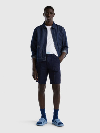 Benetton muški šorts u stilu chino modela, izrađen od čistog lana. Prednji džľepovi i mali džľep pozadi. Struk sa alkama za kaiš, rajsferšlus i dugme za zakopčavanje.
