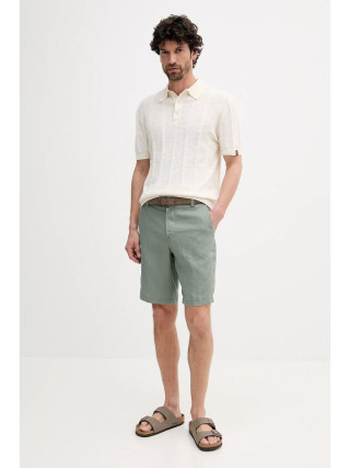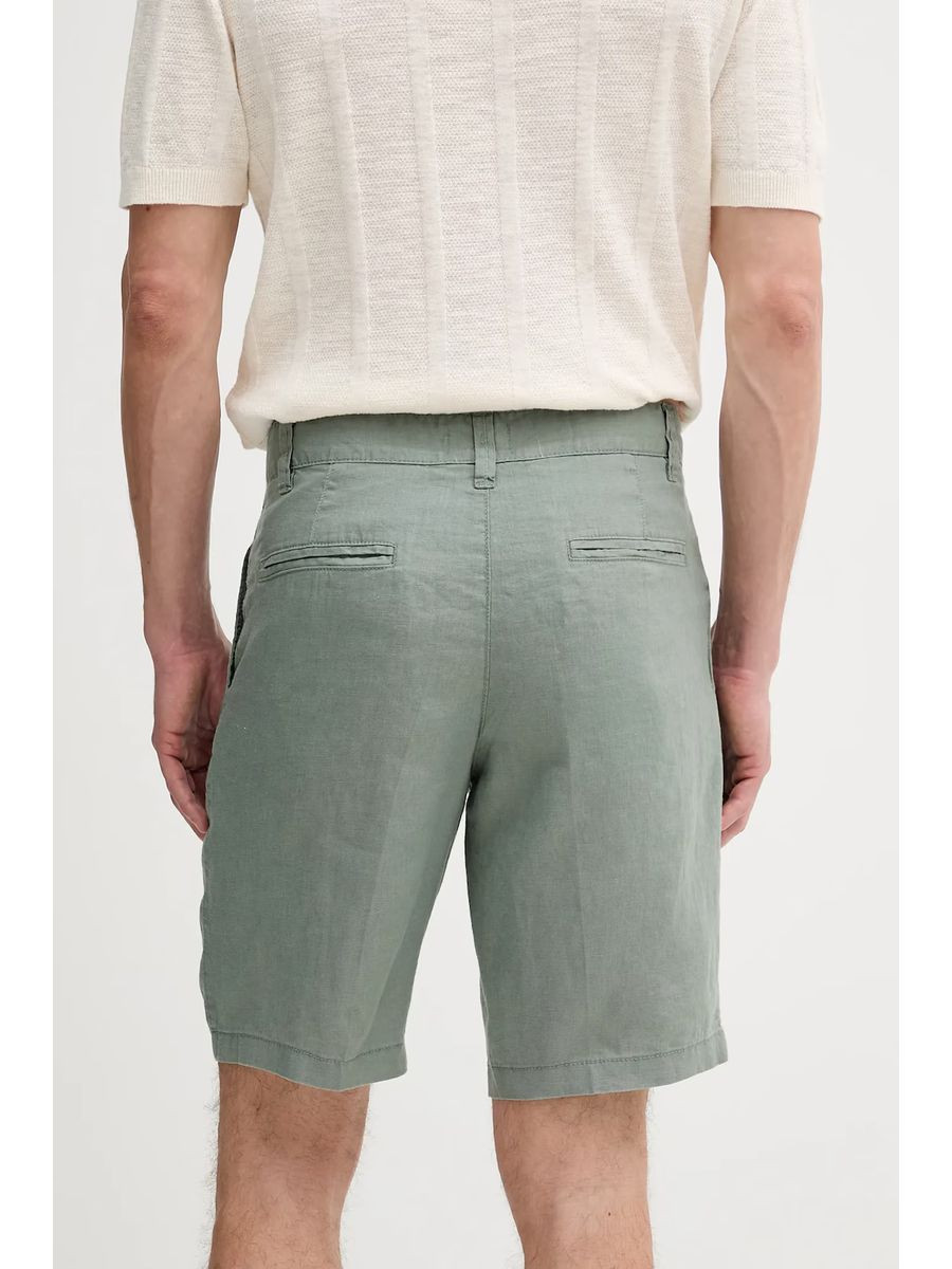 Benetton muški šorts u stilu chino modela, izrađen od čistog lana. Prednji džľepovi i mali džľep pozadi. Struk sa alkama za kaiš, rajsferšlus i dugme za zakopčavanje.