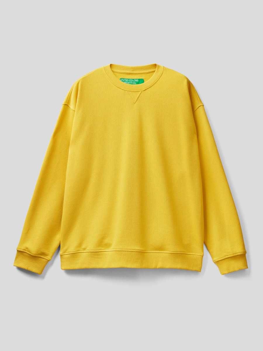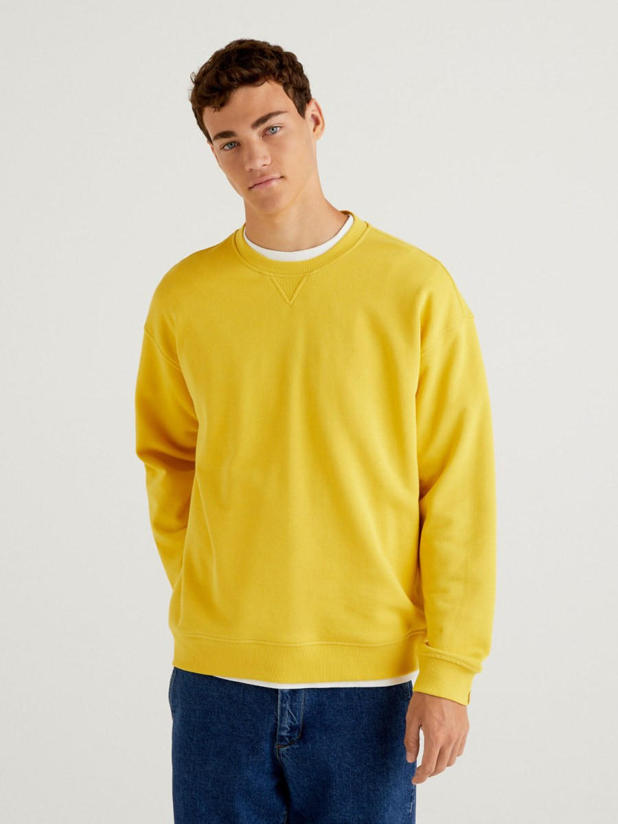 Benetton muška dukserica dugih rukava od čistog pamuka sa doslednim, ali laganim osećajem. Okrugli izrez sa rebrastim trouglastim umetkom, blago spuštenim ramenima i logotipom nanešenim na zglobu. Mekana i udobna, za opušten izgled.