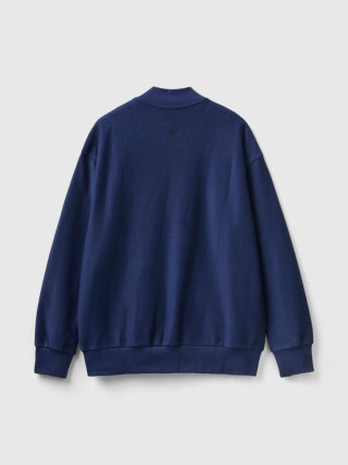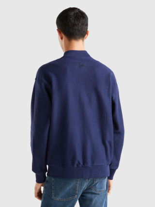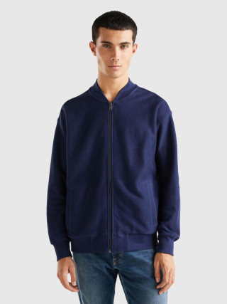Benetton muški udobni model bomber jakne od mešavine pamuka i viskoze. Opuštenog kroja sa dugim rukavima i udobnim vertikalnim prednjim džepovima, prednjim otvorom sa patent zatvaračem i izvezenim logotipom.
