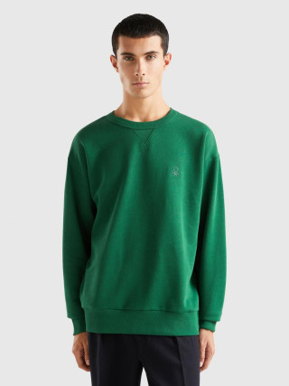 Benetton muška dukserica dugi rukav od toplog pamuka. Opuštenog kroja sa spuštenim ramenima. Detalj trougla ispod vrata, logo Benetton na prsima.