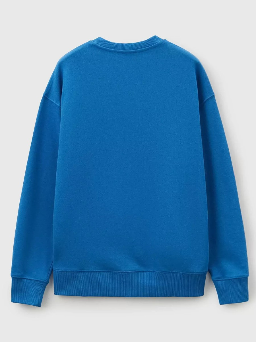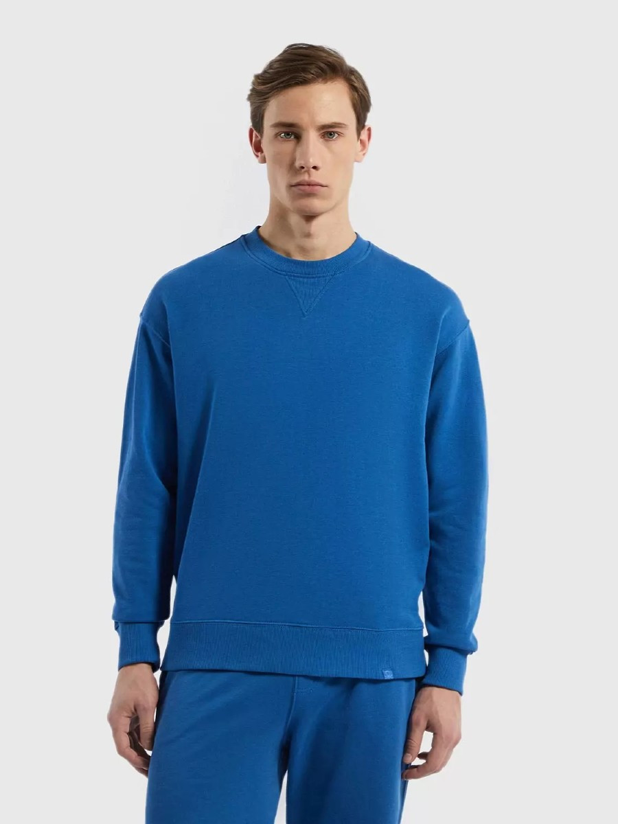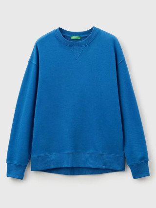 Benetton muška dukserica dugih rukava od čistog pamuka sa doslednim, ali laganim osećajem. Okrugli izrez sa rebrastim trouglastim umetkom, blago spuštenim ramenima i logotipom nanešenim na zglobu. Mekana i udobna, za opušten izgled.