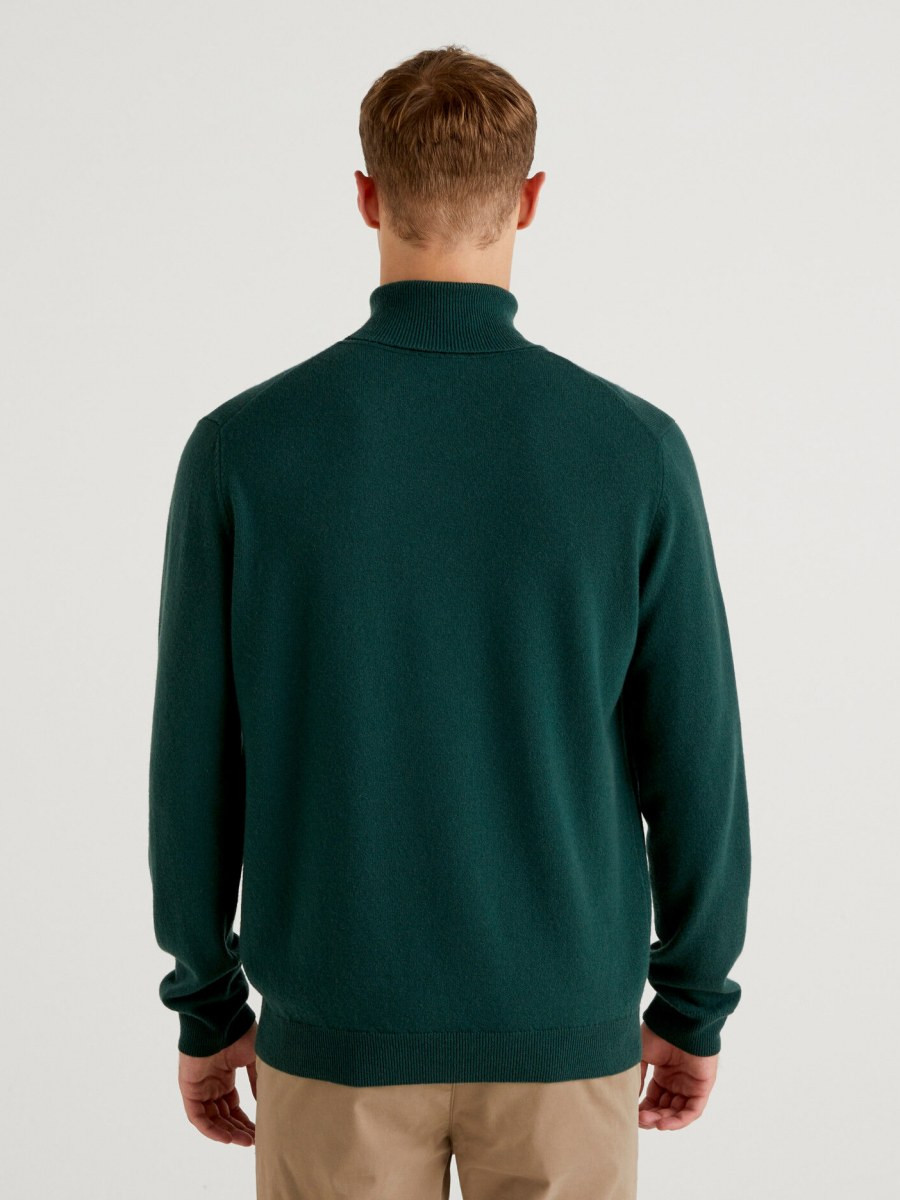 Benetton muška rolka dugih rukava od čiste merino vune, topla, lagana i prijatna na dodir. Odevni predmet čistog kroja, idealan ispod sakoa ili za nošenje sama u ležernijem stilu. Prisustvo logotipa Voolmark garantuje visok kvalitet odevnih predmeta kroz primenu i praćenje specifičnih standarda u proizvodnji vune, od uzgoja do finalnog proizvoda.