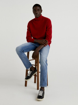 Benetton muška rolka dugih rukava od čiste merino vune, topla, lagana i prijatna na dodir. Odevni predmet čistog kroja, idealan ispod sakoa ili za nošenje sama u ležernijem stilu. Prisustvo logotipa Voolmark garantuje visok kvalitet odevnih predmeta kroz primenu i praćenje specifičnih standarda u proizvodnji vune, od uzgoja do finalnog proizvoda.