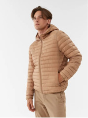 Benetton muška jakna od tehnicke Rain Defender tkanine sa regular fit krojem. Sa kapuljacom, kopcanjem na patent zatvarac i prakticnim džepovima sa patent zatvaracem. Topla, ali lagana podloga od reciklirane vate, proizvedena od PET plasticnih boca.
