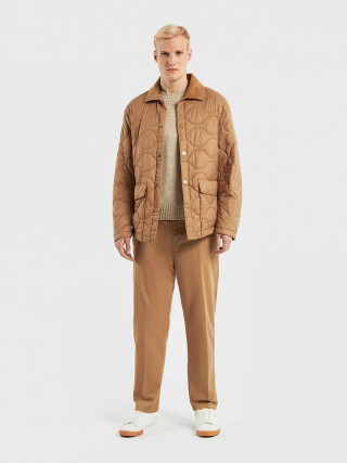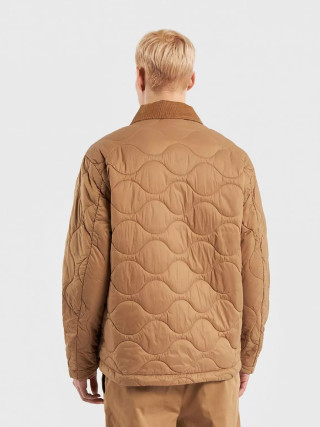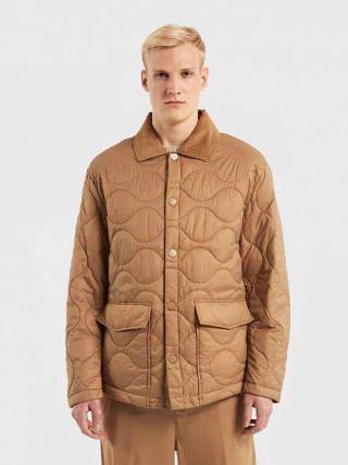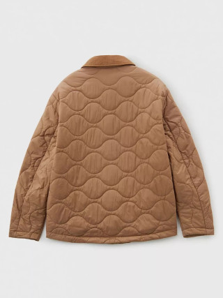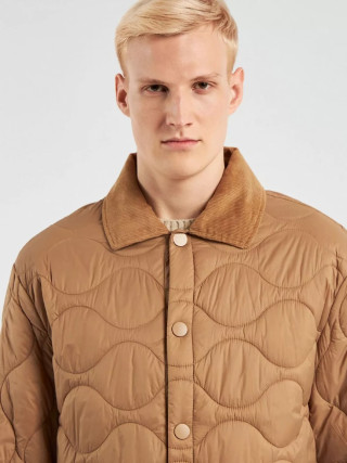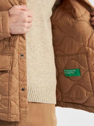 Benetton muška jakna Rain Defender sa talasastim prošivanjem, standardnog kroja. Kragna košulje od mekog somota u boji, prednje kopčanje sa dugmićima, džepovi na preklop sa skrivenim dugmetom na prednjoj strani. Topla, ali lagana podstava od reciklirane vate, proizvedene od PET plastičnih boca. Klasična jakna u modernom stilu, idealna za prve hladne dane.