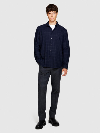 Sisley muška košulja od 100% pamučnog flanela kariranog dezena. Kragna, prednje kopčanje dugmićima, dugi rukavi i blago zaobljeni donji deo.